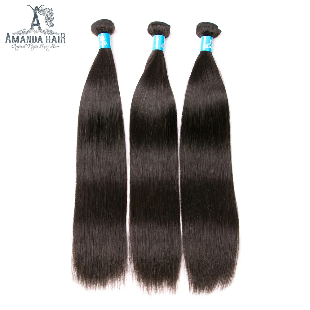 Brazilian Straight Hair 3 Bundles With 13*4 Lace Frontal 9A Grade 100% Unprocessed Human Hair No Tangles - Amanda Hair