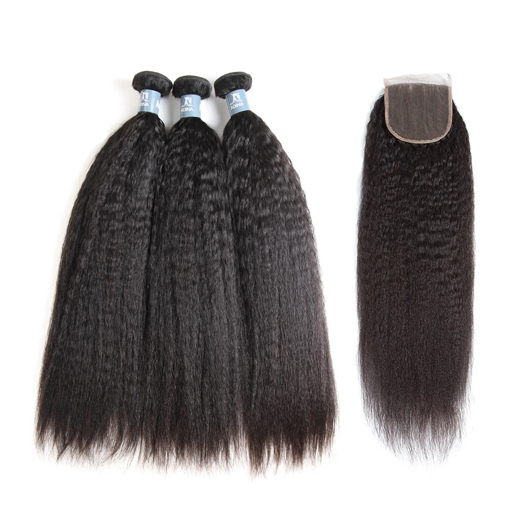 Amanda Indian Hair Kinky Straight 4 Bundles With 4*4 Lace Closure 9A Grade 100% Unprocessed Human Hair Hot Item