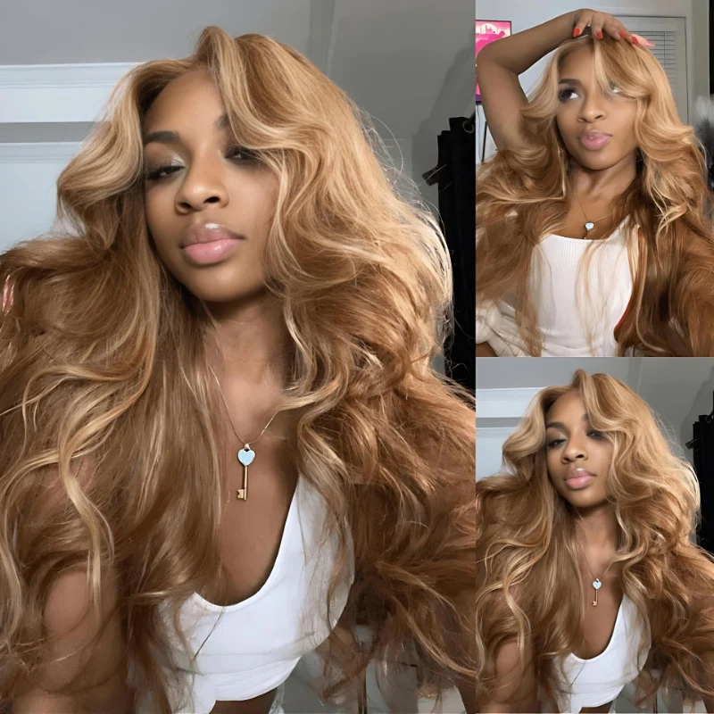Glueless Highlight Honey Blonde Body Wave 13x4 / 13x6 Pre Everything Bleach Knots Put On And Go Human Hair Wig - Amanda Hair