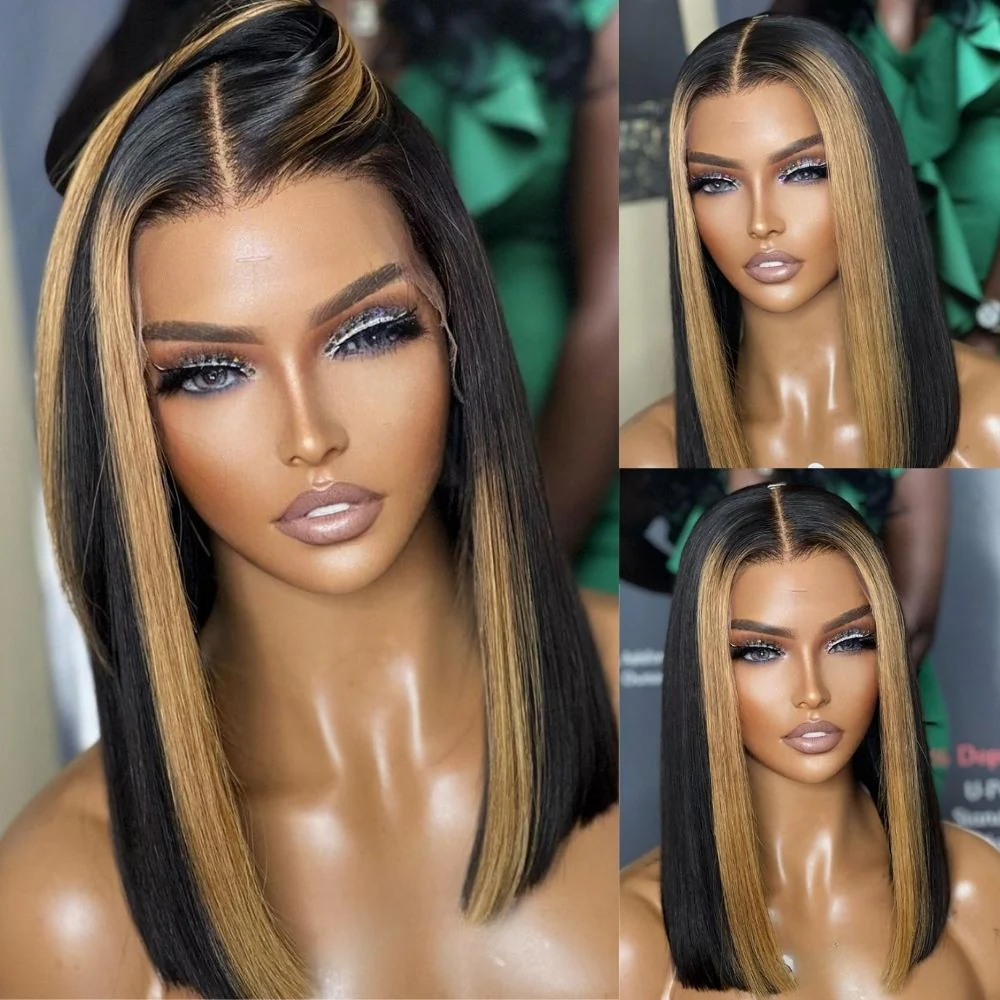 -70%Highlight Light Brown Short Bob Straight Glueless 13x4 Full Lace Front Human Hair Wig - Amanda Hair—