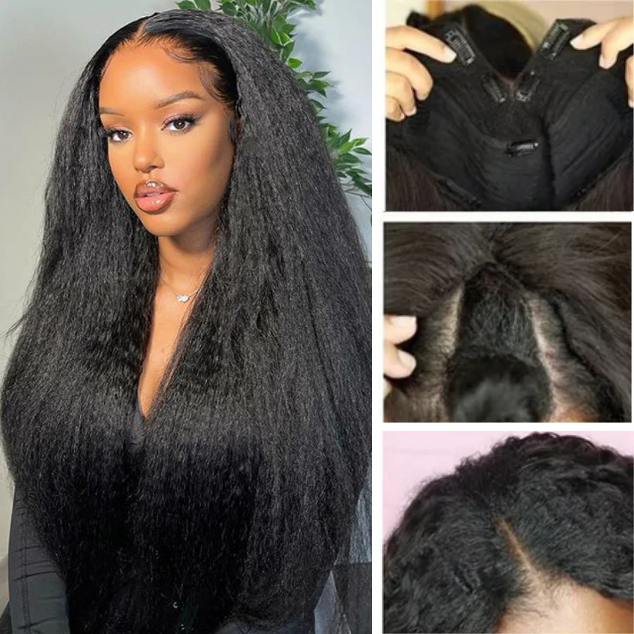 Kinky Straight V Part Wig Beginner Friendly Undetectable Natural Scalp Protective Glueless Human Hair Wigs Flash Sale