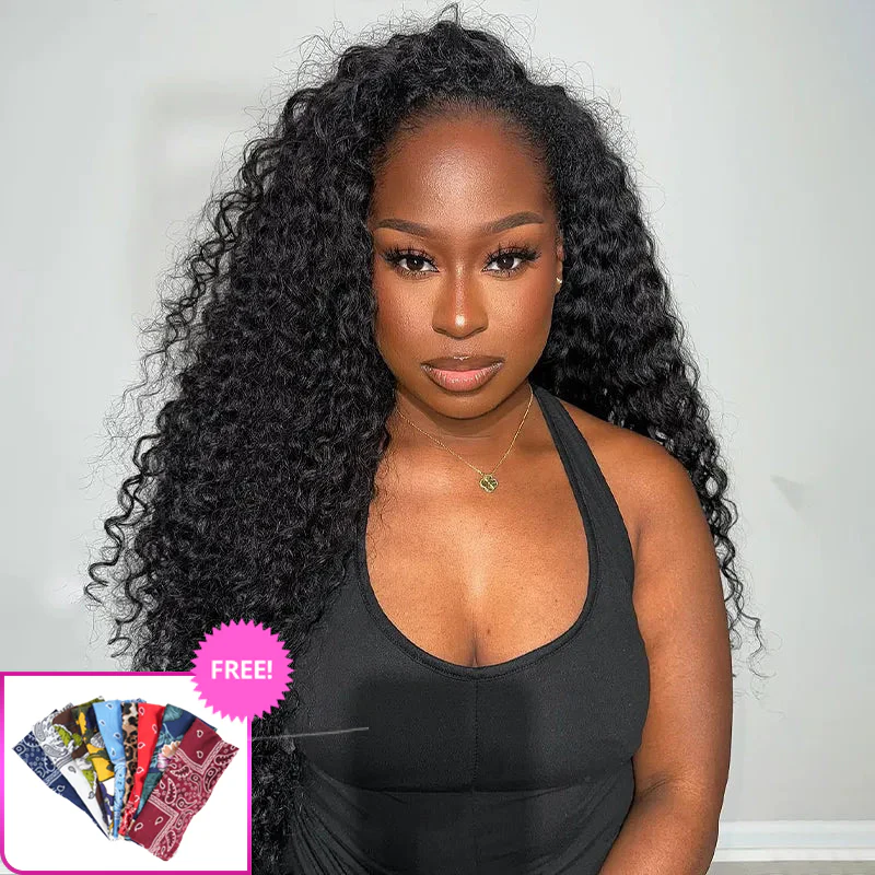 Wow $0.1 Lace Wig| Water Wave Put On & Go Invisible Drawstring Flip Over 3 In 1 Half Wig Flash Sale